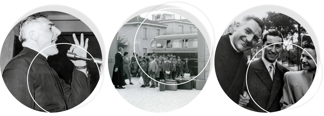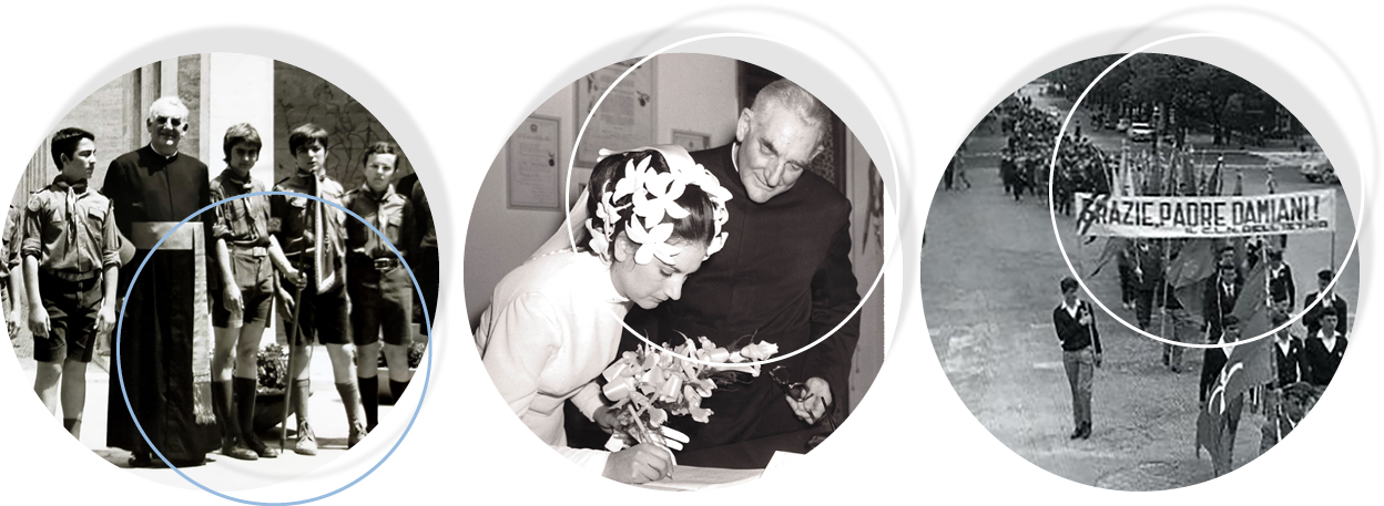 1910-1997_ Calvino Damiani Nasce a Pesaro il 1 gennaio 1910 con il nome di Calvino che, alla consacrazione sacerdotale sostituirà con Pietro. Orfano del padre a 8 anni, a 17 anni anche della madre. Matura in lui la vocazione religiosa e il 14 agosto 1938 viene consacrato sacerdote. Con la seconda guerra mondiale, come cappellano militare è destinato al fronte in Africa, poi gravemente ammalato rimpatriato e nel 1945 assegnato al Campo Profughi e Reduci di Udine. Dai campi di concentramento arrivano a migliaia, poi i profughi dall’Istria, da Fiume, dalla Dalmazia, anche bambini. Decide così di fondare una struttura per raccogliere i bambini vittime della guerra.