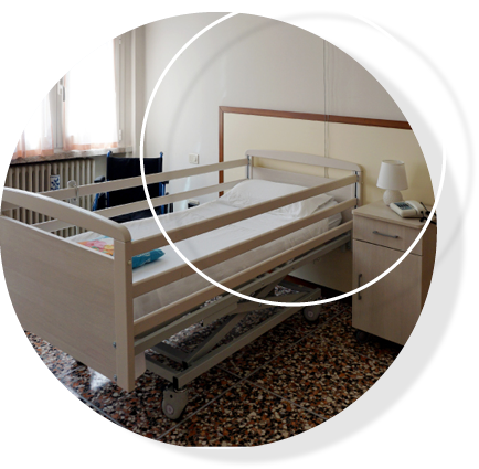 La camera singola ha una ampiezza minima di 12mq, le camera doppie hanno ampiezza minima di 18mq. Il mobilio standard è composto da un letto in legno articolato con sponde, un comodino, un tavolo con sedie, un guardaroba a tre o quattro ante e una vetrinetta o una libreria. Il mobilio standard può essere integrato o sostituito in parte da proprio mobilio personale (comò, poltrona, apparecchio TV, divano, quadri, eccetera) permettendo di ricostruire una dimensione familiare e personalizzata nella sua originalità. Ogni stanza è dotata di apparecchio telefonico con numero personale ad uso gratuito e di antenna TV e predisposizione per portare il proprio apparecchio tv.